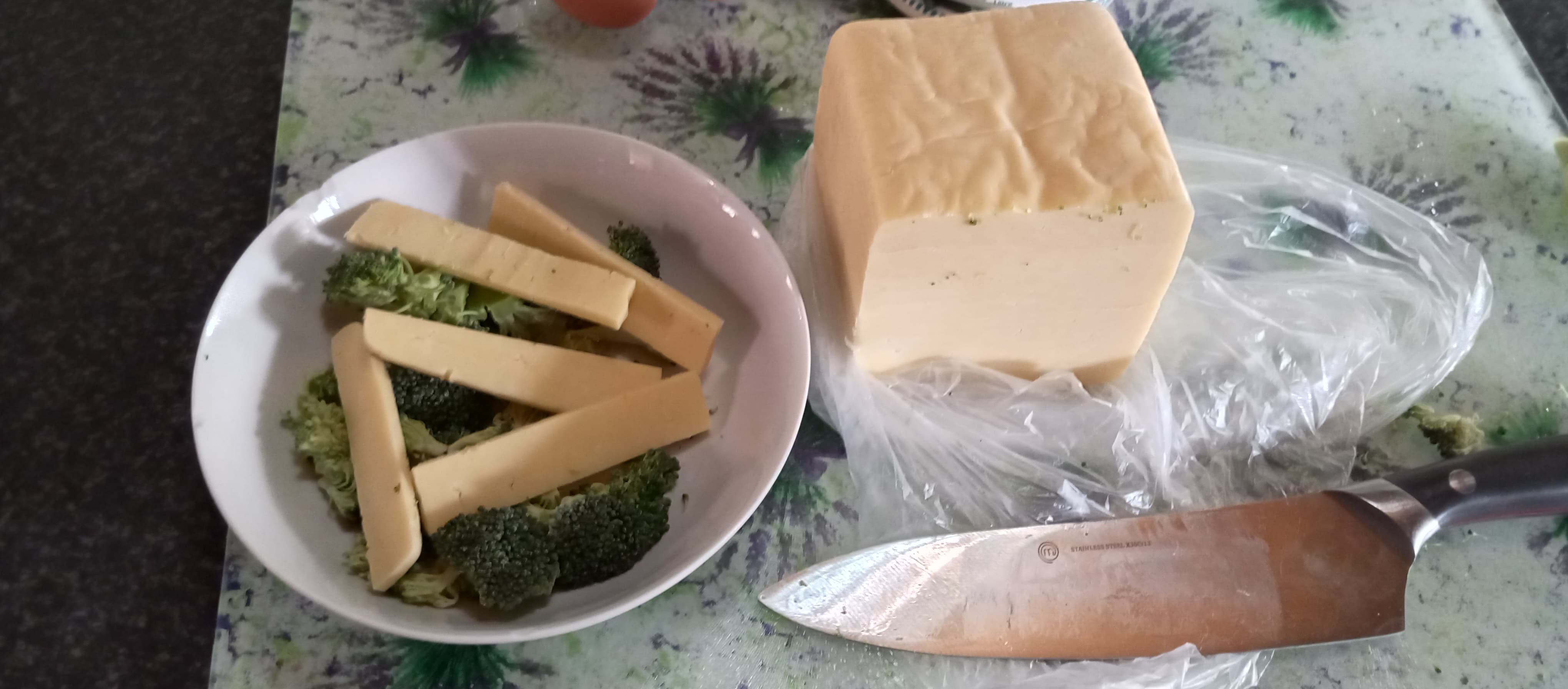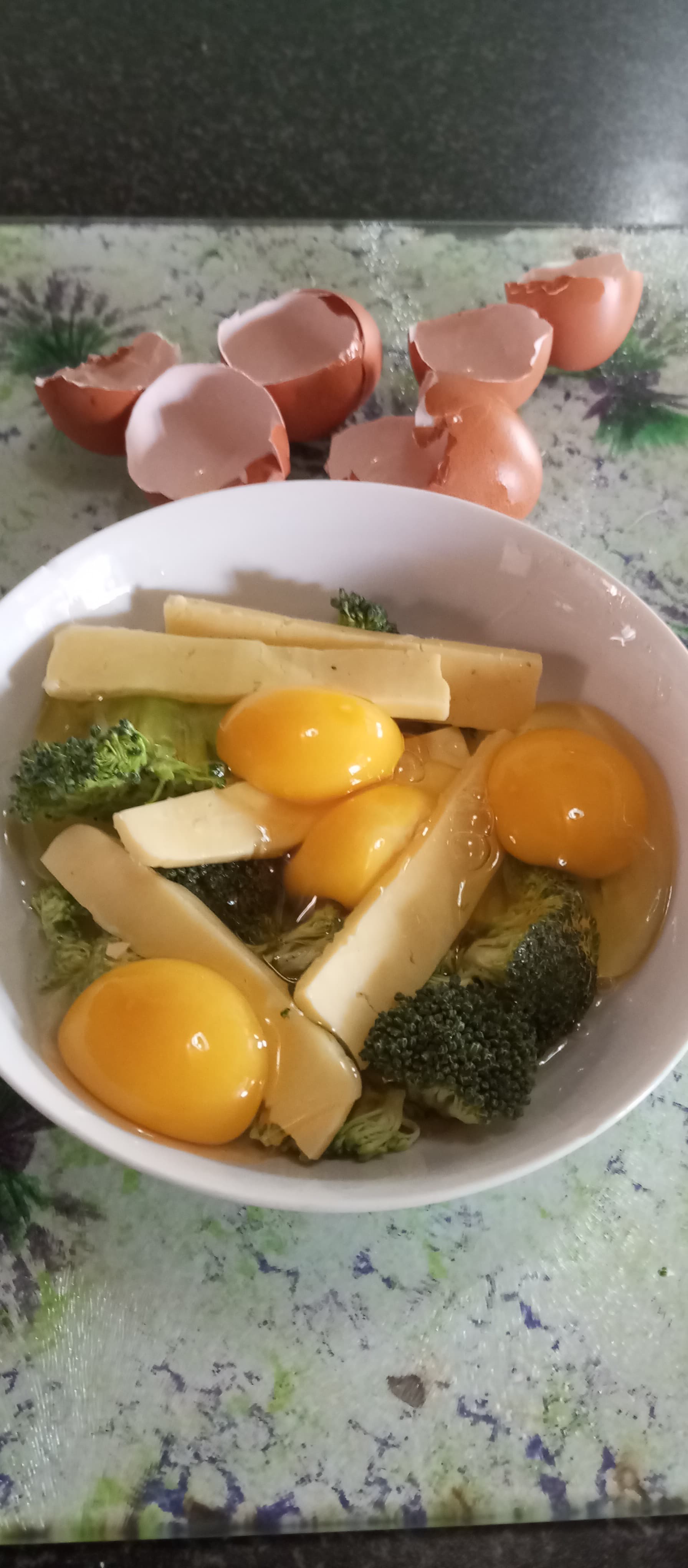 The pictures are pretty self explanatory. Naturally the portions of ingredients are relative to the size of the bowl. ie. dont use a whole block of cheese, or a whole head of broccoli. The final bowl image will give you a rough idea of the portion ratio’s.
