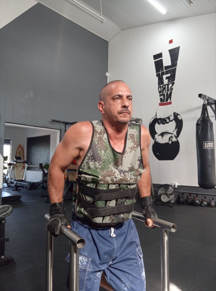 Last heavy day at gym. For two weeks we do resistance band hypertonic training and rucking vest walks.