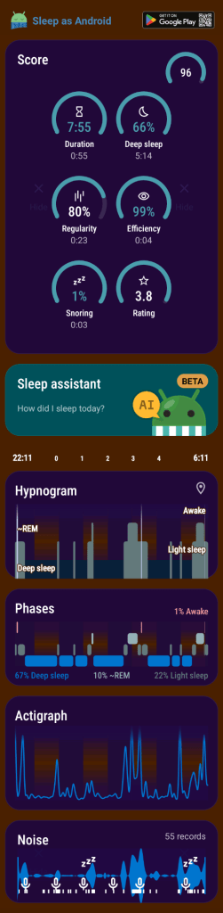 I’m tracking with “Sleep Pro”, biometric by Mi Band 8 Active.