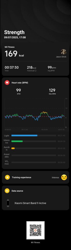My resting HR is 75. So by the graph you can see where I’m doing warm up sets, and when I start pushing heavy. Today’s big spike was training to failure for 3 sets on my new PR weight. (Free weight barbell). Getting aerobic level HR on just lifting is good progress.